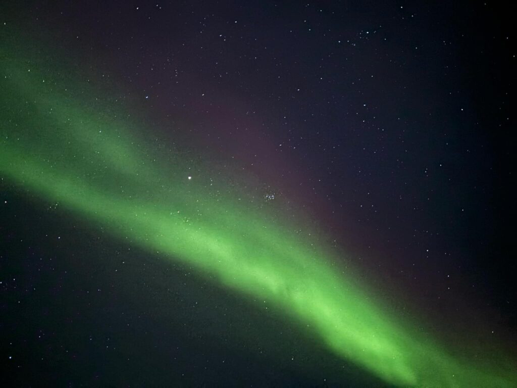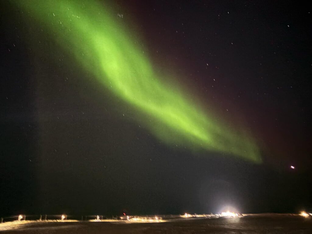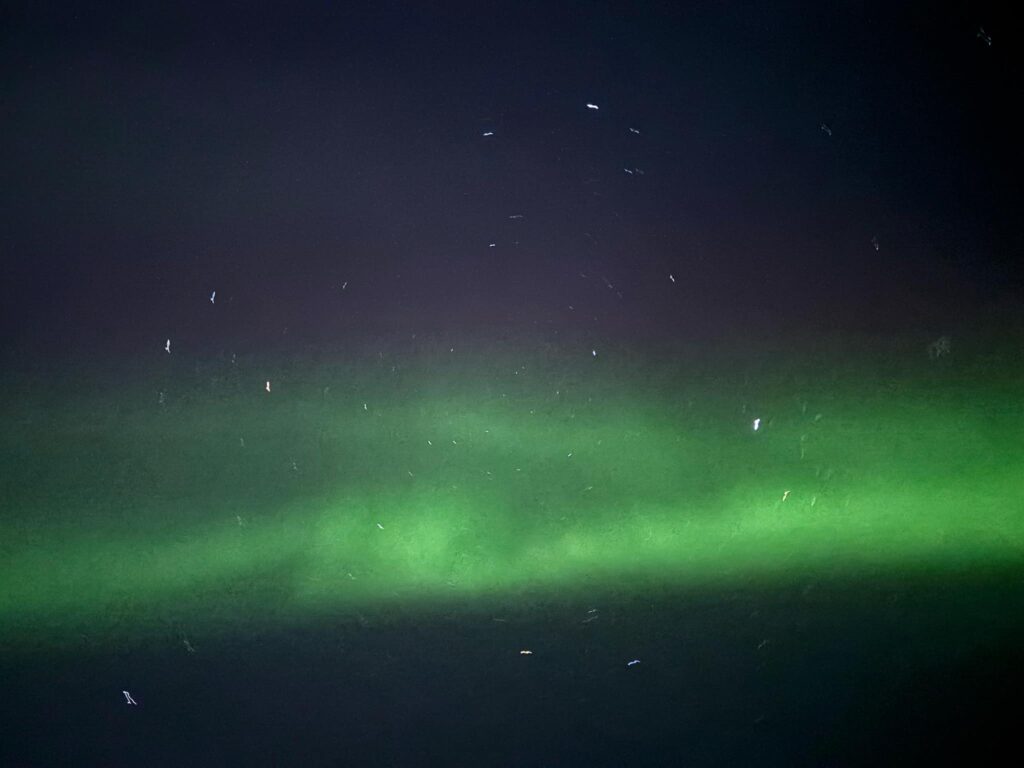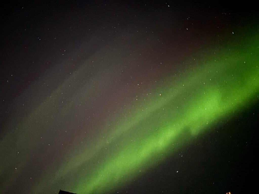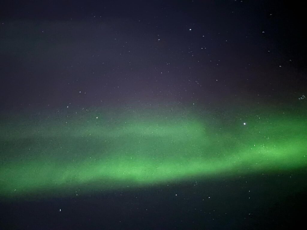 Pour être 100% honnête, c’est beaucoup plus impressionnant sur caméra qu’en vrai! Tout ce que je voyais avec mes yeux c’était une genre de bande nuageuse grisâtre. Peut-être une petite teinte verte à certains endroits. Mais la caméra capte mieux les couleurs!!