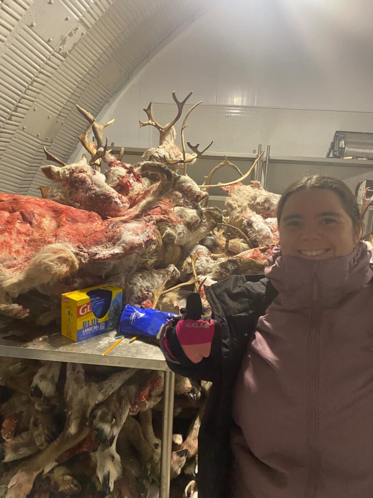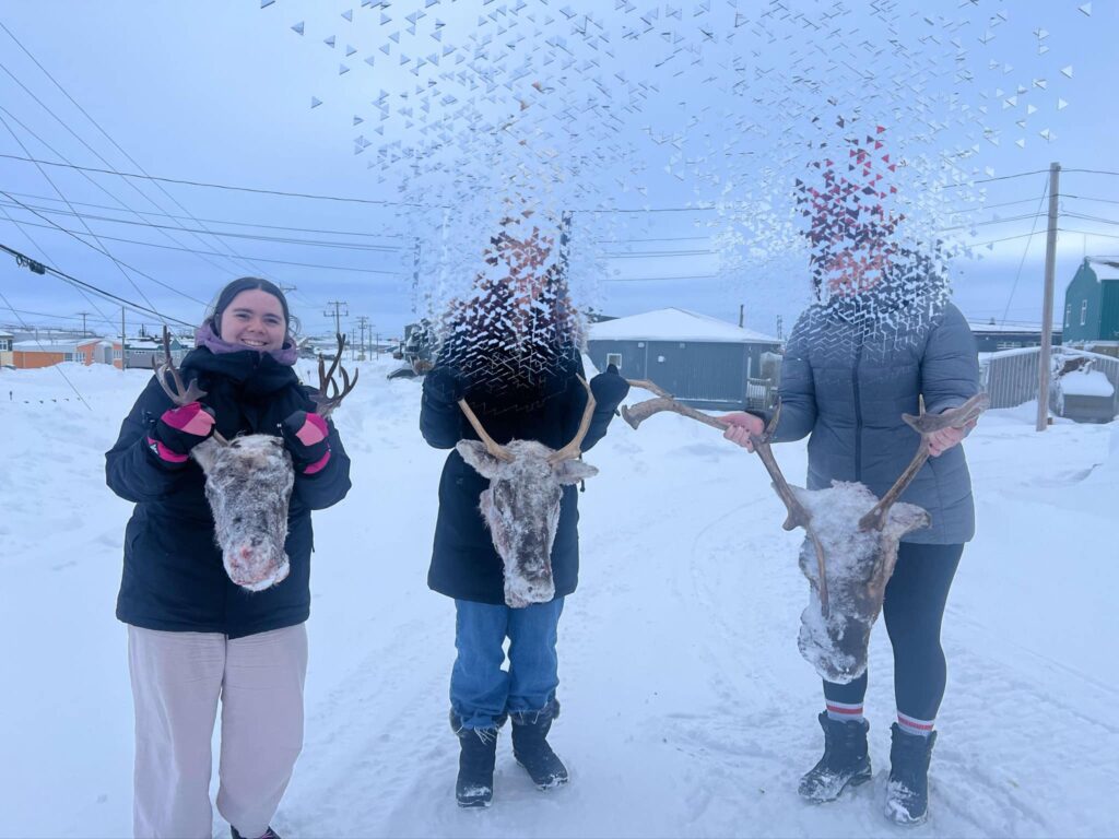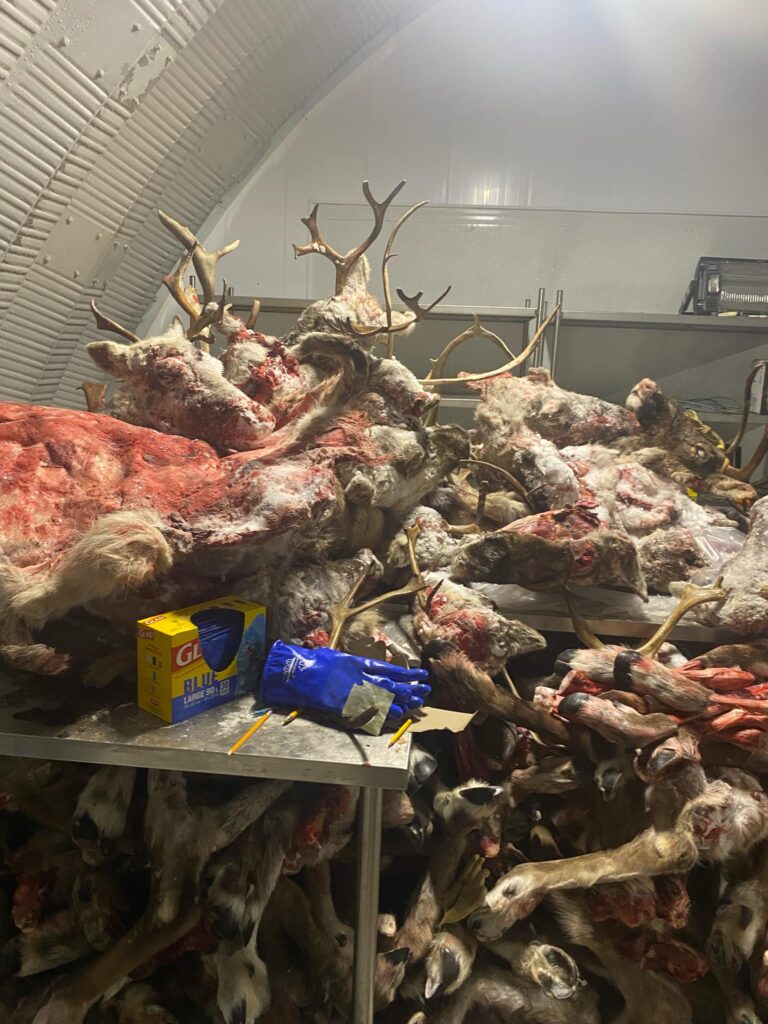 Aujourd’hui j’ai pu visiter le community freezer! C’est un gros congélateur où en entrepose les animaux pour les découper et dépecer et après la communauté vient se servir; donc un caribou chassé peut nourrir plusieurs familles! On y laisse aussi les peaux et la fourrure pour les projets créatifs!